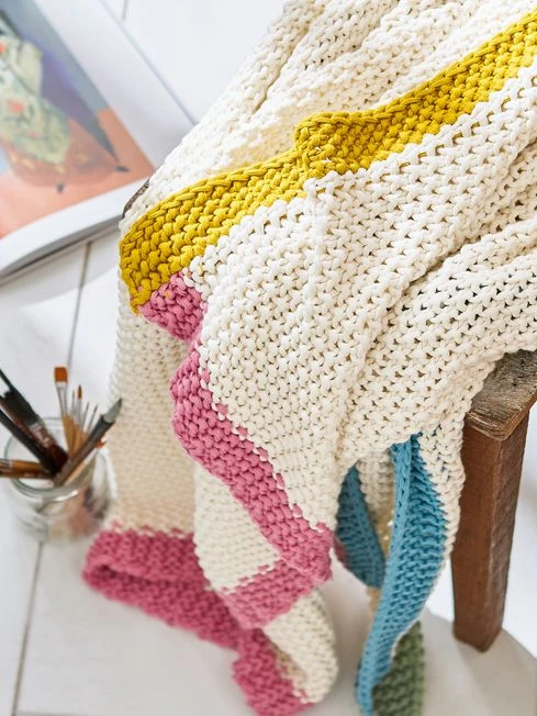 This plush knitted throw will add texture and a lovely layered look to your bedding. It’s made from a chunky knit in a neutral crème which gives it a luxurious feel. We couldn’t add a pop of colour for good measure, so each edge is finished with a pretty pastel colour in blue, yellow, pink and green.