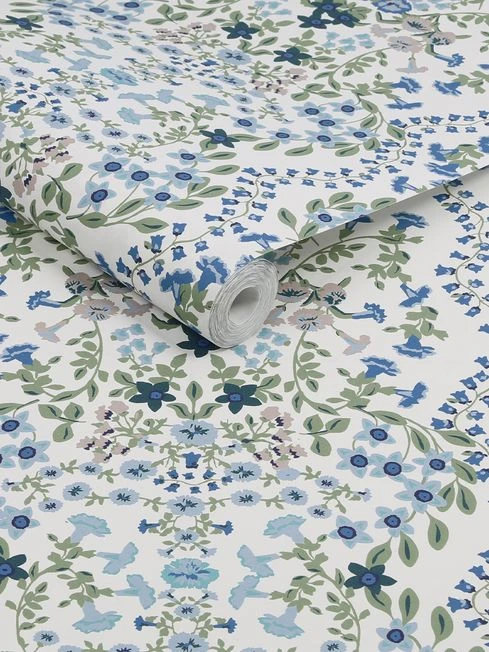 This design is the perfect statement to any wall. The symmetrical trellis ditsy brings the perfect balance of modern and heritage to this wallpaper. Beautiful shades of green and blue intertwine adding a pop of colour, delicately placed on a soft crème background. Printed on a matt substrate for a contemporary look and feel. This wallpaper is also paste-the-wall, making it easy to hang.