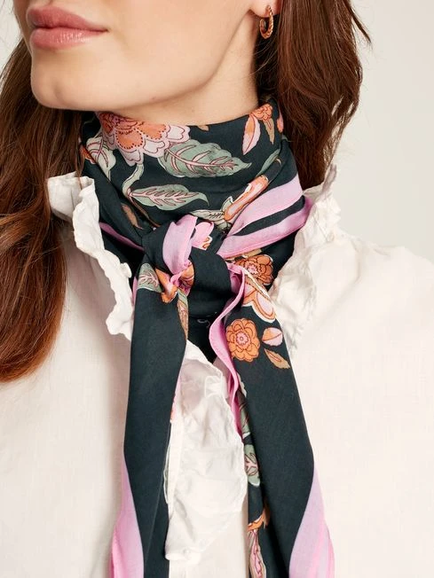An intricately printed scarf is a simple yet effective way to elevate everyday looks. The Middleton scarf is lightweight and adorned in a hand-drawn print which draws on the beauty and wonder of nature. Its versatile square shape means you can style it in whichever way takes your fancy, whether that’s tied in your hair or as a head scarf. Viscose Square Lightweight Hand-drawn heritage print Dimensions: 95 x 95cm