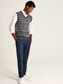 Here’s proof that you can’t beat a classic. Our heritage-inspired Fair Isle knitted vest is best worn over a crisp Oxford shirt for a layer of warmth when the occasion calls for it. Crafted from a soft yet hardwearing cotton blend, it has a traditional ribbed-V-neck as well as a ribbed hem and armholes. As an extra premium detail and unmistakable mark of quality, we’ve added a faux-leather Joules branded patch above the hem. Cotton blend Fair isle pattern V neck Ribbed neck, hem and armholes Faux leather branded tab