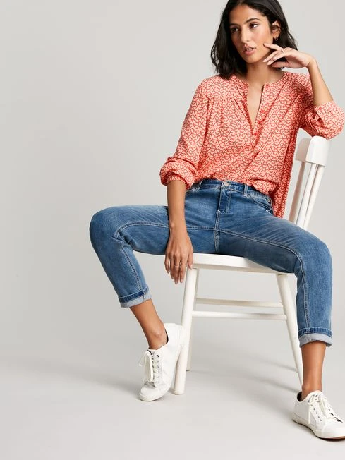 One more blouse for your wardrobe? Oh, go on then… Our new Georgia blouse is a pop-over style great for layering up in the cold months. It has a grandad collar, button placket and keyhole button cuffs. It’s adorned in a hand-drawn print that will really catch the eye and is finished with a Joules embroidered hare to the hem.