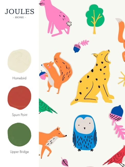 Let your little ones go wild with this medley of country critters, from owls and foxes to birds and squirrels this charming animal wallpaper design will add character to any child’s room. Bold and bright this characterful design has a white background which perfectly showcases the rainbow colour palette. This lovely design has a large repeat for impactful scale and is printed on a matt substrate for a contemporary look and feel. This wallpaper is also paste-the-wall, making it easy to hang.