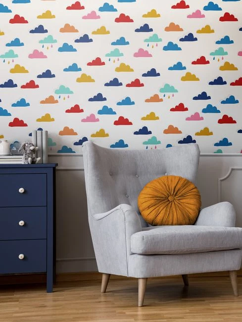 Whatever the weather is a fun, bold and bright wallpaper that is bound to brighten any child’s bedroom or playroom and your mood! An array of charming, rainbow-coloured clouds sit perfectly upon a soft white background in this colourful design. Printed on a matt substrate for a contemporary look and feel. This wallpaper is also paste-the-wall, making is easy to hang.