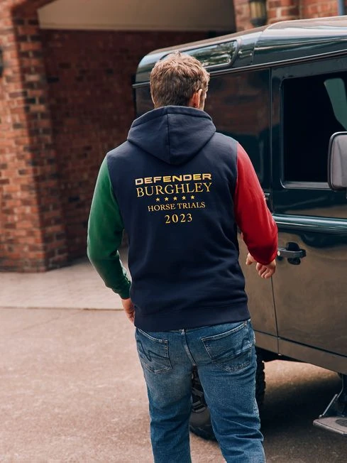 Great for layering under gilets or on top of polos, this colour-block hoodie is a handy style to have especially if the weather takes a turn at this year’s Burghley Horse Trials! Part of the official collection, it features this year’s rich colour palette of red, green and navy and is crafted from enduring heavyweight jersey, so it will be a layering go-to for a long time to come. It has event and sponsor embroidery to the chest and sleeves, along with an additional event screen print on the back. It’s finished with practical details including a hood with herringbone tape ties, a kangaroo pocket and ribbed hem and cuffs. Make your style a family affair with the matching hoodie for little ones. Part of our official Burghley Horse Trials collection Heavyweight jersey Colour block design Hood with herringbone ties Event embroidery to the chest and sleeves Additional event screen print to the back Ribbed hem and cuffs Kangaroo pocket with Joules embroidery Matching style for children