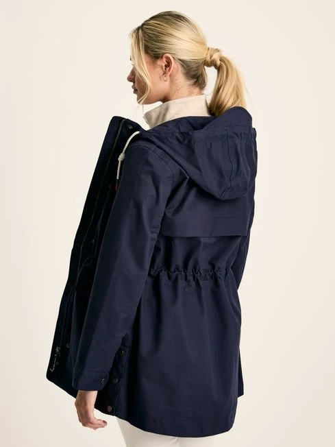 Our Padstow Raincoat is a new style and the perfect companion for wet weather walks. Its waterproof fabric and fully taped seams will keep you dry in a downpour, while its a-line shape and adjustable waist will make you feel your very best. It has an array of practical features too, including a full zip and popper fastening, two front flap pockets with poppers, and side vents with poppers for freer movement. It’s completed with toggles to the hood, a storm flap to the back and a Joules hare screen print to the hem. A-line Waterproof with fully taped seams Fixed hood with storm peak Hood toggles Adjustable waist for a flattering fit Full zip and popper fastening Two front pockets with popper fastenings Side vents with poppers for freer movement Storm flap to the back Length: 82cm (based on UK size 12)