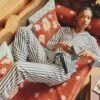 Drift off to dreamland with our ever-so-special Alma pyjama set. The set is crafted from lightweight and breathable viscose and comes with a long-sleeved button-up shirt, complete with a patch pocket and contrasting piped trims. The matching bottoms have a straight fit through the leg, an elasticated waist, luxurious velvet-topped drawcords and slanted side pockets. With a collection of heritage-inspired hand-drawn prints available, you’ll be truly spoilt for choice. Viscose Long sleeves Button-down fastening Patch pocket to the chest Piped trims Velvet topped drawcords Elasticated waist Slanted side pockets Heritage print