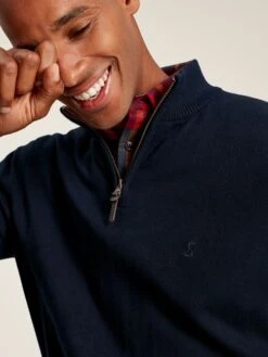 One of our best-loved men’s styles, this quarter zip jumper is crafted from soft yet substantial cotton and is comfy enough for layering and yet dapper enough to wear on its own. The contrast back-neck is ribbed, as are the hem and the cuffs. We recommend pulling it on over a shirt for ultimate style, warmth and comfort. Perfect for those smart-casual occasions that can be tricky to dress for. 100% cotton Classic fit Funnel neck with quarter zip fastening Faux leather zip pull Ribbed hem, neck and cuffs Contrast back neck tape