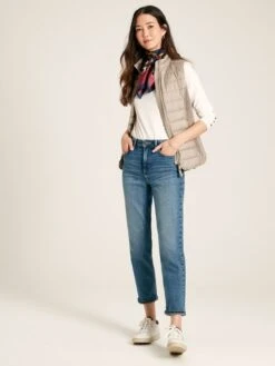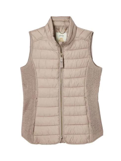 A gilet is one of those wardrobe wonders that you’ll call on time and time again. So if you’re looking for your first one, or to update your current, our new Whitlow is just the ticket. Feel-good features include chevron quilting, elasticated side panels for a flattering shape and beautiful top stitch detailing throughout. Its buttery-soft outer is showerproof making it a wonder in light bursts of rain. There’s a full zip fastening with a zip guard, two side pockets with concealed zips for a sleek look and a curved hem. We’ve made it in an easy-to-style colour and finished it with a Joules hare to the hem too. Showerproof Padded Chevron quilting Elasticated side panels for a flattering fit Zip fastening Hand-drawn printed lining Concealed zip pockets Buttery-soft pearlised finish Joules embroidered hare to the hem