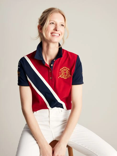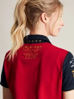 Show your love and support of the Burghley Horse Trials with the official polo shirt of 2023. The perfect thing to wear if you’re attending this year’s event, it has an updated colour palette which sits back with the whole collection. It has short sleeves, a button placket, a navy sash and gold event embroidery to the chest, sleeves and outer back neck. The quality can be seen through the fabric, the velvet undercollar and intricate details. Wear it for the event, and love it forever. Part of our official Burghley Horse Trials collection Short sleeves Button placket Contrast colour sash Velvet collar stand and undercollar Event embroidery to the chest, sleeves and outer back neck Side splits
