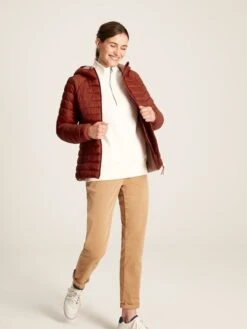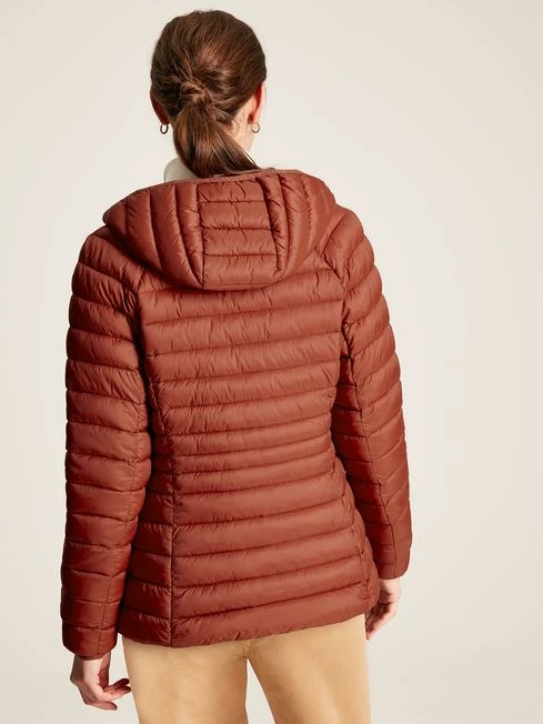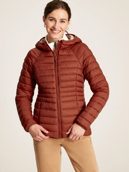 For the unpredictable British weather, you need a jacket that’s predictably reliable. Our Bramley padded jacket is perfect for keeping in the car, as it packs away into its own pocket for an instant layer of warmth whenever you need it. Unlike other bulkier padded jackets, this one has been designed to fit and flatter, with curved seams and thinner baffles to the waist. The fabric has a buttery soft hand-feel and is showerproof, making it ideal for light bursts of rain. You’ll find a contrast lining with a pearlised finish inside, and we’ve added invisible zip pockets into the side seams. Our Joules hare is printed to the bottom hem – a mark of quality you can always trust. Packs away into an internal pocket Showerproof Hood Variegated baffles to flatter the waist Contrast lining Silicone trims Buttery soft hand-feel Joules have a screenprint and logo to the sleeve Two invisible zip pockets to side seams Length: 65cm (based on UK size 12)