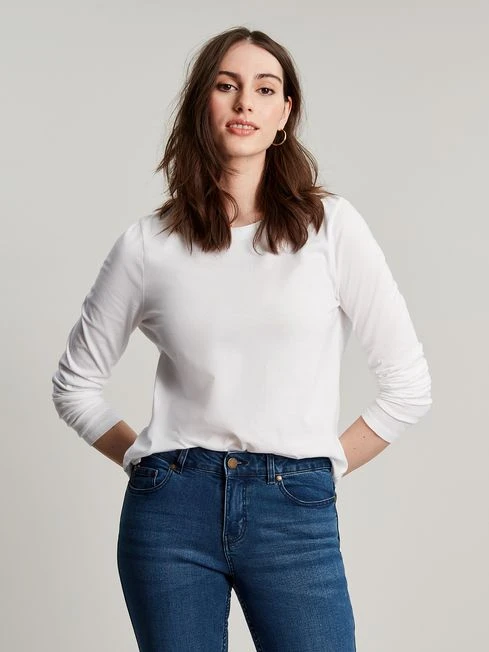Our Holly top is the perfect layering piece for all your cold-weather looks. It’s made from jersey has long sleeves, and a crew neck and comes in several easy-to-style colours.