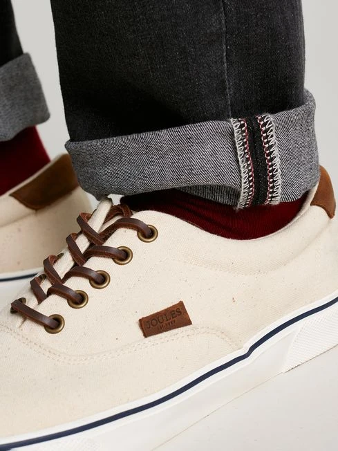 This pair of canvas trainers are the perfect off-duty style. In a versatile colour and with a durable rubber cupsole, they’re a great style to have in your wardrobe all year round. The uppers are made from canvas, while the laces are hardwearing leather in a classic tan colour. Wear with anything from shorts in the summer to jeans in the winter.