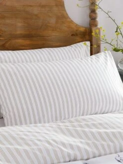 Add another luxurious layer to your bedroom with this set of two standard pillowcases. The antique gold ticking stripe will add a subtle pop of colour to any bedding. They are crafted from soft cotton percale so you can drift off to sleep in both style and comfort. 100% BCI Cotton Percale 180 TC
